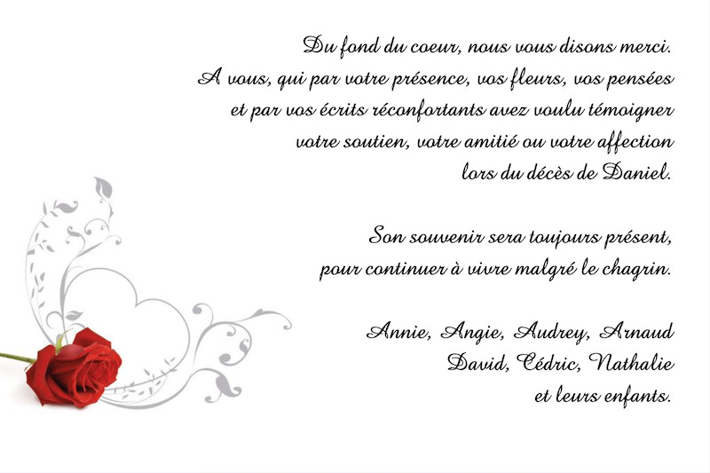 personnalisez rapidement et facilement en ligne la carte de remerciement de décès "rose avec coeur" - Carte de remerciement de deuil 10 x15 cm - Enveloppes comprises - livraison offerte France Métropolitaine