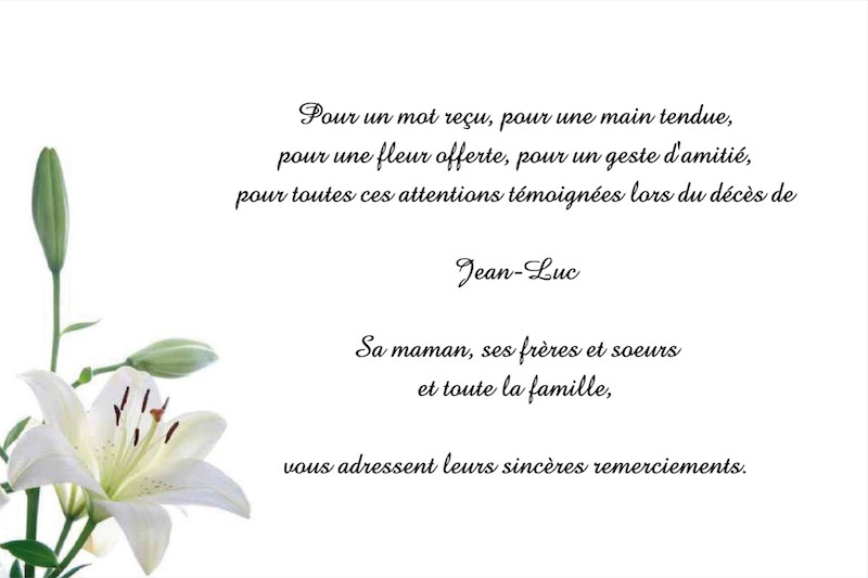 personnalisez rapidement et facilement en ligne la carte de remerciement de décès "amaryllis" - Carte de remerciement de deuil 10 x15 cm - Enveloppes comprises - livraison offerte France Métropolitaine