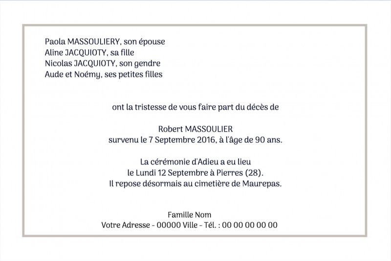 Faire-part de décès "contour"