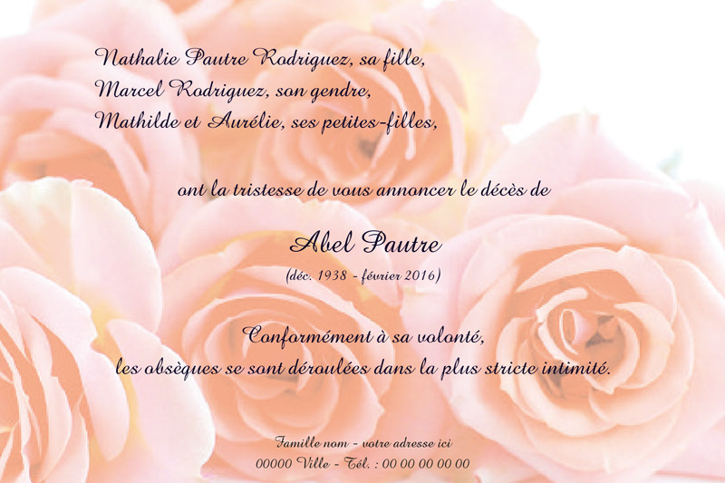 personnalisez rapidement et facilement en ligne le faire-part de décès "amalgame de roses" - faire-part de deuil 10 x15 cm - Enveloppes comprises - livraison offerte France Métropolitaine