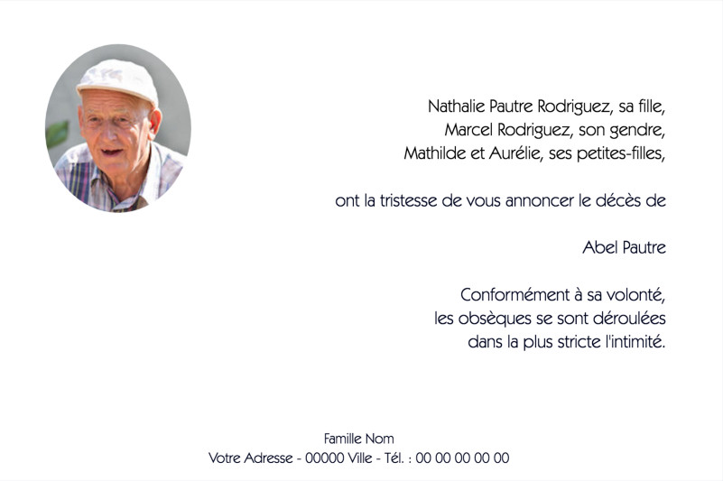 personnalisez rapidement et facilement en ligne le faire-part de décès "avec une photo" - faire-part de deuil 10 x15 cm - Enveloppes comprises - livraison offerte France Métropolitaine